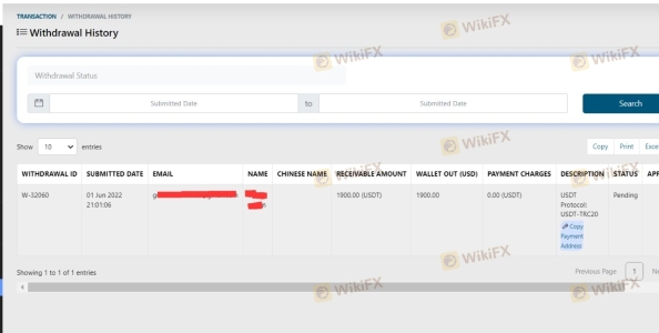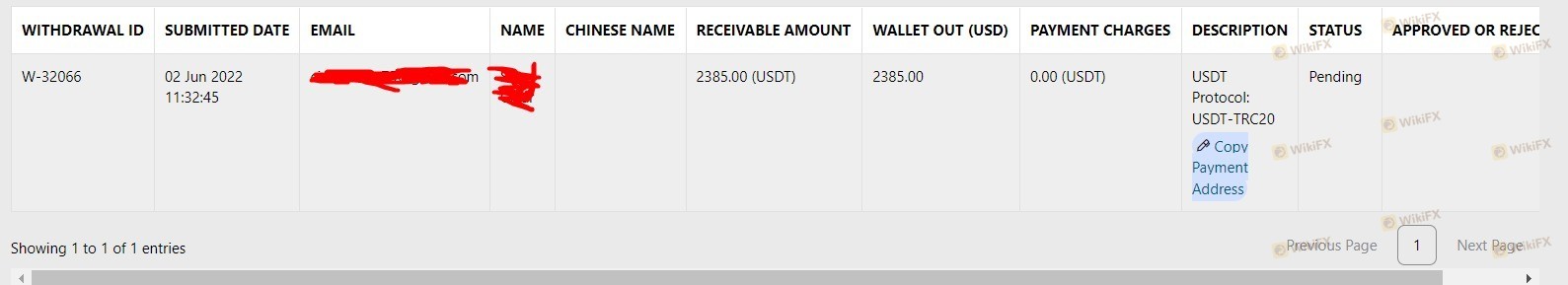 मेरा खाता २१०७२७४ था। मैंने २,००० डॉलर जमा किए लेकिन ३० जुलाई को निकालने में असमर्थ था। उन्नयन के कारण मंच उपलब्ध नहीं था। ट्रांसफर अकाउंट प्लेटफॉर्म से अलग था, जिससे 4700 डॉलर का बड़ा नुकसान हुआ। उन्होंने मुझे ब्लॉक कर दिया। इससे दूर रहें।
