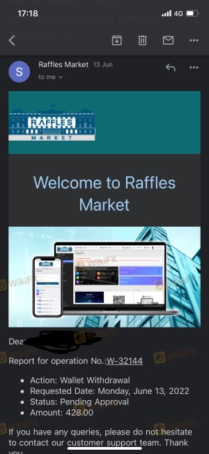 मुझे अभी भी 13 दिन पहले भेजे गए निकासी अनुरोध के लिए संपर्क व्यक्ति नहीं मिल रहा है। यदि आप सुरक्षित वातावरण में व्यापार करना चाहते हैं तो रैफल्स का चयन न करें।