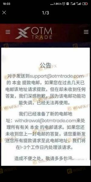 में निकासी अनुपलब्ध है OTM Trade । PTFX के समान OTM Trade भी फरार हो गया है।