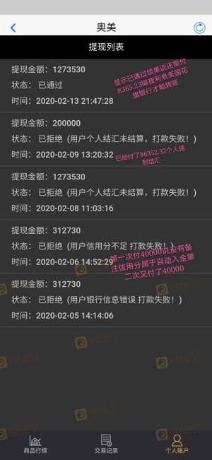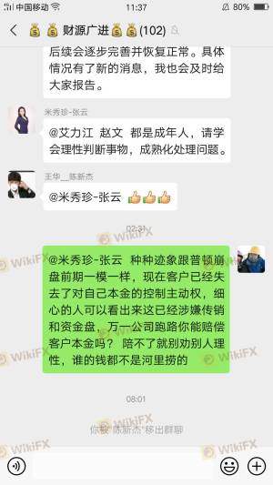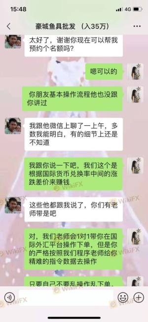वीचैट के एजेंट ने दावा किया कि उनके पास पेशेवर शिक्षक थे, जो डेटा-आधारित विदेशी मुद्रा व्यापार के माध्यम से 0 जोखिम और उच्च लाभ का एहसास कर सकते थे, और ग्राहकों को जमा करने के लिए प्रेरित कर सकते थे। शिक्षक ने आपको पहले लाभ कमाया, शेष 30 हजार आरएमबी से 300 हजार आरएमबी में छलांग लगाई। फिर वे ग्राहकों को फंड जोड़ने के लिए प्रेरित करेंगे, लेकिन बैकस्टेज के माध्यम से ग्राहकों के खातों में हेरफेर करने, इसे ग्राहकों पर दोष देने और संशोधन के लिए 40000 आरएमबी के लिए पूछने के लिए कोई पहुंच नहीं दी। ऐसा करने के बाद, मैं अभी भी 1270 हजार RMB या तो वापस नहीं ले सकता। मंच ने कहा कि लाभ बहुत अधिक था और एक व्यक्तिगत कर के रूप में 86536.32 आरएमबी के लिए कहा गया। ग्राहक सेवा ने सुनिश्चित किया कि जब तक मैं शुल्क का भुगतान करता हूं, तब तक निधि प्राप्त होगी। उन्होंने 24 घंटे के भीतर मुझे जवाब नहीं दिया, इस प्रकार, एक और रोलओवर उत्पन्न हुआ। उस समय, मुझे एहसास हुआ कि यह केवल एक घोटाला है।