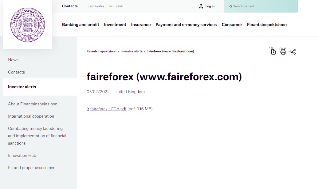 निवेशक चेतावनी - फेयरफॉरेक्स.