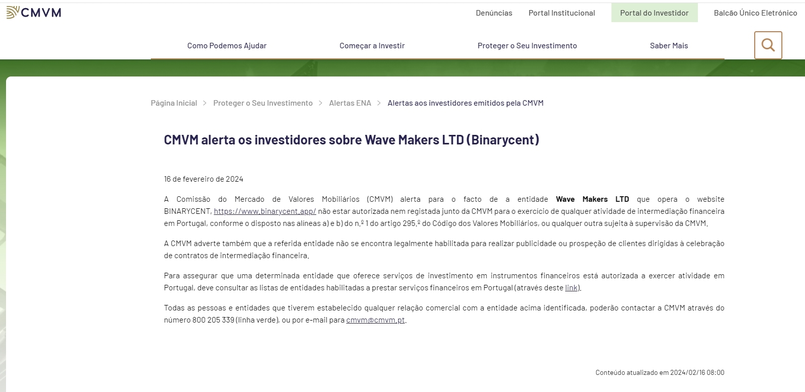 सीएमवीएम ने निवेशकों को दी चेतावनी Wave Makers LTD ( Binarycent )