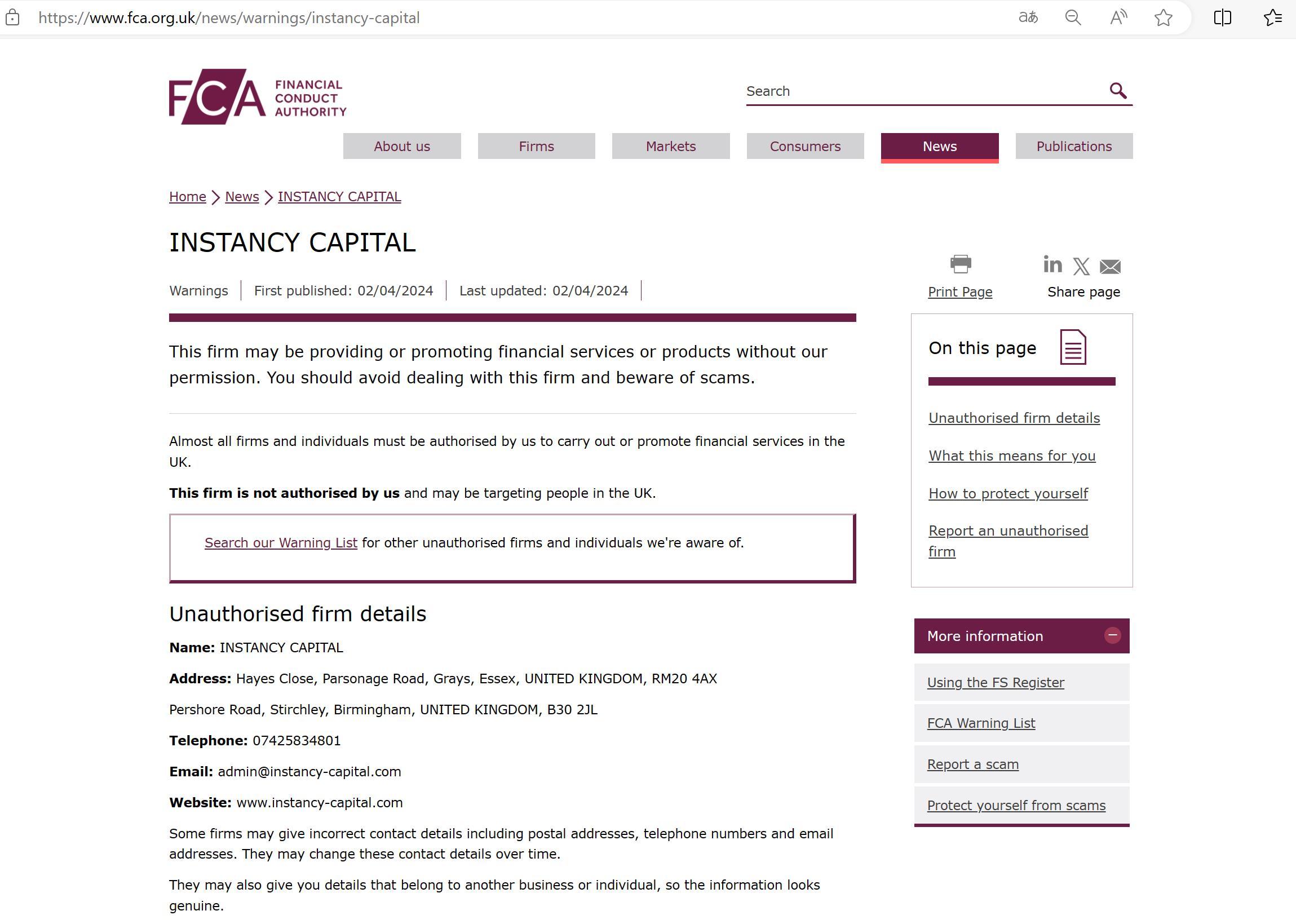 वित्तीय आचरण प्राधिकरण (FCA) यूनाइटेड किंगडम में एक वित्तीय नियामक निकाय है, लेकिन यह यूके सरकार से स्वतंत्र रूप से संचालित होता है, और वित्तीय सेवा उद्योग के सदस्यों को शुल्क देकर वित्तपोषित किया जाता है। 19 दिसंबर 2012 को, वित्तीय सेवा अधिनियम 2012 को शाही स्वीकृति मिली, और यह 1 अप्रैल 2013 से लागू हुआ। इस अधिनियम ने वित्तीय सेवाओं के लिए एक नया नियामक ढांचा तैयार किया और वित्तीय सेवा प्राधिकरण को समाप्त कर दिया। एफसीए उपभोक्ताओं को सेवाएं प्रदान करने वाली वित्तीय फर्मों को नियंत्रित करता है और यूनाइटेड किंगडम में वित्तीय बाजारों की अखंडता को बनाए रखता है। यह खुदरा और थोक वित्तीय सेवा फर्मों द्वारा आचरण के नियमन पर केंद्रित है।