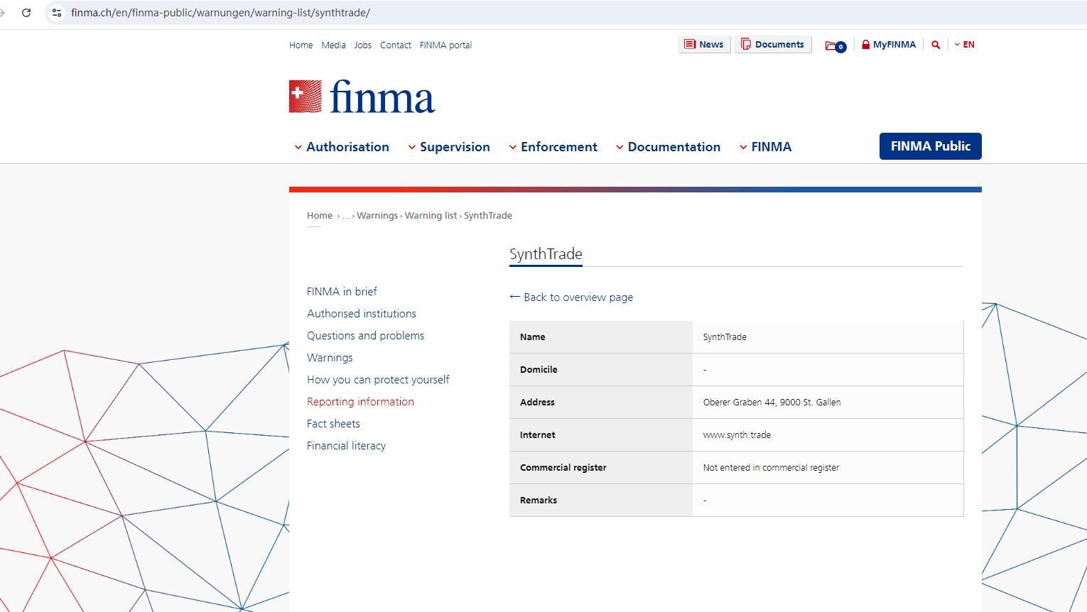 अनधिकृत कंपनियों और व्यक्तियों की चेतावनी सूची चेतावनी सूची - www.synth.trade.