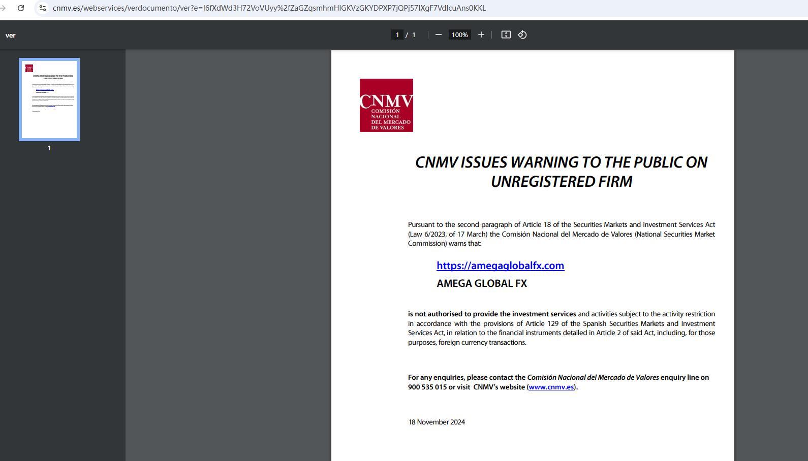 CNMV ने अपंजीकृत फर्म के बारे में जनता को चेतावनी जारी की प्रतिभूति बाजार और निवेश सेवा अधिनियम (कानून 6/2023, 17 मार्च) के अनुच्छेद 18 के दूसरे पैराग्राफ के अनुसार, कोमिसियोन नैशनल डेल मर्काडो डे वेलोरेस (राष्ट्रीय प्रतिभूति बाजार आयोग) चेतावनी देता है कि: https://amegaglobalfx.com AMEGA GLOBAL FX को स्पेनिश प्रतिभूति बाजार और निवेश सेवा अधिनियम के अनुच्छेद 129 के प्रावधानों के अनुसार गतिविधि प्रतिबंध के अधीन निवेश सेवाएं और गतिविधियाँ प्रदान करने के लिए अधिकृत नहीं किया गया है, उक्त अधिनियम के अनुच्छेद 2 में वर्णित वित्तीय साधनों के संबंध में, उन उद्देश्यों के लिए, विदेशी मुद्रा लेनदेन सहित। किसी भी पूछताछ के लिए, कृपया 900 535 015 पर कोमिसियोन नैशनल डेल मर्काडो डे वेलोरेस पूछताछ लाइन से संपर्क करें या CNMV की वेबसाइट (www.cnmv.es) पर जाएँ। 18 नवंबर 2024