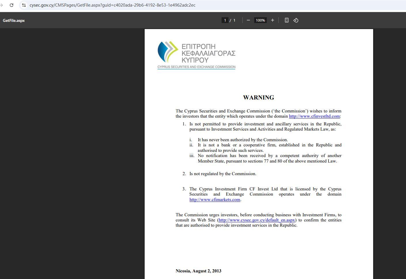 चेतावनी साइप्रस प्रतिभूति और विनिमय आयोग ('आयोग') निवेशकों को सूचित करना चाहता है कि वह इकाई जो डोमेन http://www. CFI nvestltd.com: 1. निवेश सेवाओं और गतिविधियों तथा विनियमित बाजार कानून के अनुसार, गणराज्य में निवेश और सहायक सेवाएं प्रदान करने की अनुमति नहीं है, क्योंकि: i. इसे आयोग द्वारा कभी भी अधिकृत नहीं किया गया है। ii. यह गणराज्य में स्थापित बैंक या सहकारी फर्म नहीं है और ऐसी सेवाएं प्रदान करने के लिए अधिकृत है। iii. उपर्युक्त कानून की धारा 77 और 80 के अनुसार, किसी अन्य सदस्य राज्य के सक्षम प्राधिकारी द्वारा कोई अधिसूचना प्राप्त नहीं हुई है। 2. आयोग द्वारा विनियमित नहीं है। 3. साइप्रस निवेश फर्म cf invest ltd जिसे साइप्रस प्रतिभूति और विनिमय आयोग द्वारा लाइसेंस प्राप्त है, http://www. डोमेन के अंतर्गत संचालित होती है। CFI markets.com. आयोग निवेशकों से आग्रह करता है कि निवेश फर्मों के साथ व्यापार करने से पहले, वे अपनी वेबसाइट (http://www.cysec.gov.cy/default_en.aspx) से परामर्श करें ताकि यह पुष्टि हो सके कि कौन सी संस्थाएं गणराज्य में निवेश सेवाएं प्रदान करने के लिए अधिकृत हैं। निकोसिया, 2 अगस्त, 2013