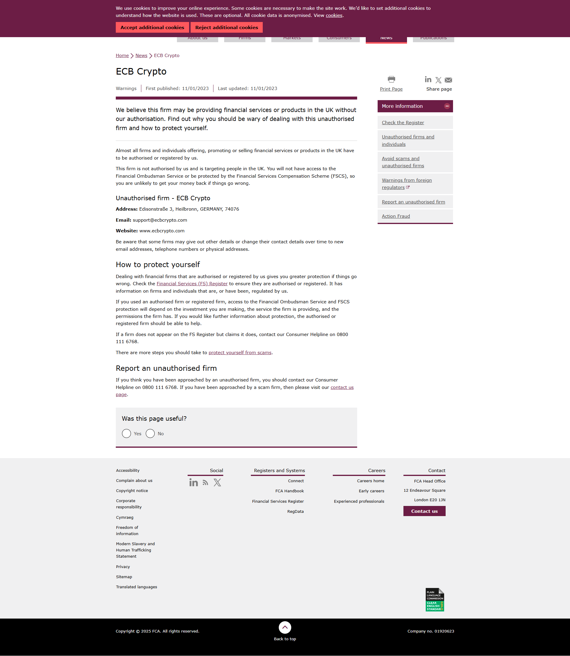 FCA द्वारा अनधिकृत फर्मों की चेतावनी सूची ECB क्रिप्टो.