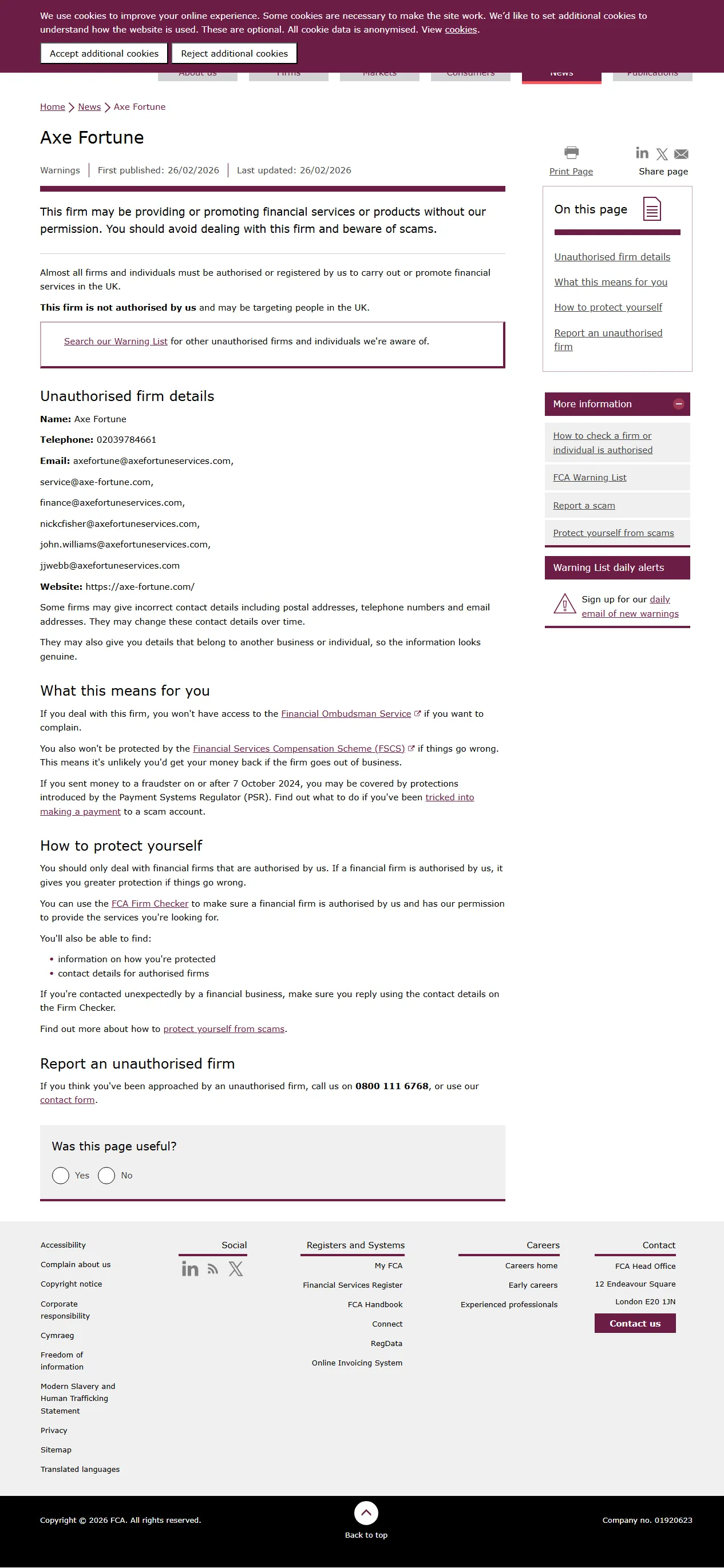 FCA की अनधिकृत फर्मों की चेतावनी सूची Axe Fortune.