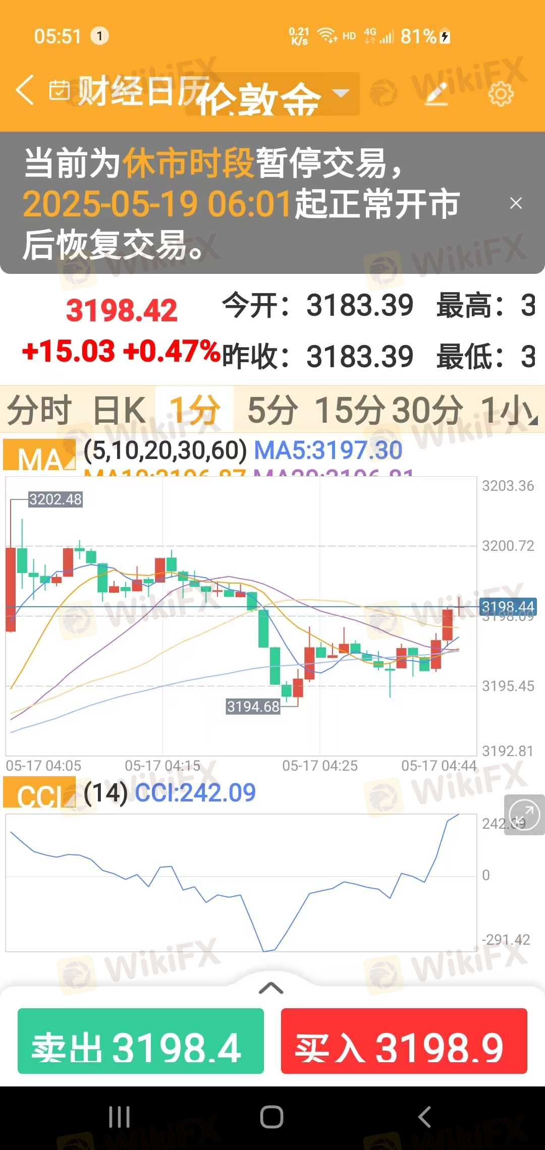 各位好,今天是2025年5月17号,发现一个问题,同样是交易平台,不同国家监管,他们运营时间不同,看数据就知道了,黑色图片是ex markets英国监管,白色图片香港黄金交易所监管的香港金盛金业平台,数据完全不同,存在作假,客服说他们是合法的,要么就是有香港黄金交易所做庇佑,他们乱搞,数据根本不同步国际黄金交易市场,要么就是他们提前关闭,看图片只能说不正规,交易滑点,入金故意延长时间,等着投资者爆仓,