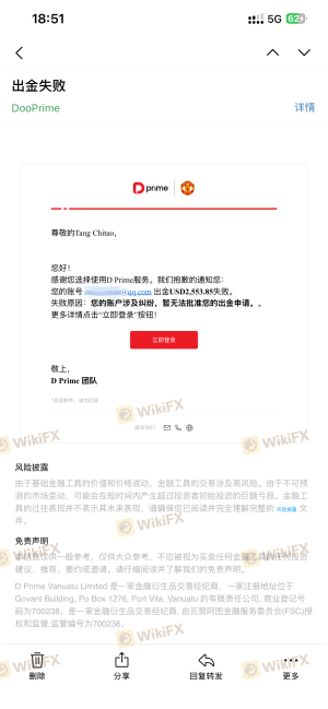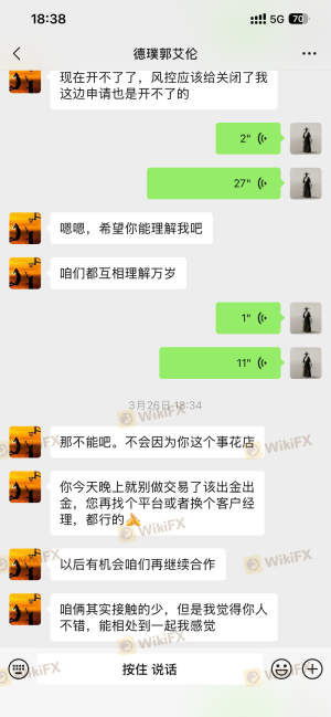 我在德璞平台正常交易,按客户经理要求不在平台继续交易,账号剩余2553.85USD申请出金,却收到邮件:您的账户涉及纠纷,暂无法批准您的出金申请。清问我是正常交易,哪里涉及了纠纷,等了一个月也没有邮件说明为啥纠纷,怎么处理,直接账号就被禁用,也无法出金,准备无限制拖延我出金。德璞也是大平台,首先我是正常的交易行为,不涉及返佣和延迟套利,也没用滥用流动性,更没有操纵市场和进行异常交易,贵平台这种行为严重侵犯了客户的利益,典型的亏了不算违规,赚了就以各种理由说客户违规,黑客户盈利。
