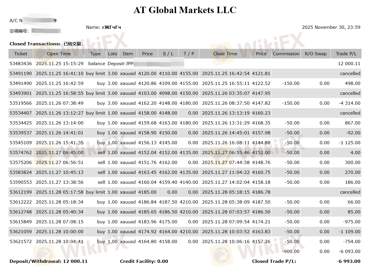 अप्रैल की शुरुआत में, जापान में पढ़ाई के दौरान, मुझे हांगकांग स्थित एटीएफएक्स प्लेटफॉर्म से एक कॉल आई जिसमें मुझे टेंसेंट वीडियो पर एक लाइव ट्रेडिंग सत्र देखने के लिए कहा गया। बाद में, मैंने $12,000 जमा करने और उन्हें वीचैट के माध्यम से मेरे ट्रेड्स को गाइड करने देने का फैसला किया। ग्राहक सेवा ने 20% स्टॉप-लॉस सीमा का विज्ञापन किया, लेकिन उसी दिन, उन्होंने 2-3 लॉट्स के साथ ट्रेड्स किए—जो मेरी पूंजी से कहीं अधिक थे—जिसके परिणामस्वरूप भारी नुकसान हुआ! प्रति लॉट कमीशन $50 तक था, और गोल्ड स्प्रेड 50 से ऊपर बना रहा। बाद में, प्लेटफॉर्म ने मेरे ट्रेडिंग मेंटर को खराब प्रदर्शन का हवाला देते हुए बदल दिया, और $5,000 और जमा करने के बाद, मई के अंत तक, मेरी $17,000 की कुल पूंजी में $14,784 का नुकसान हुआ—यानी 80% की हानि दर! मई के अंत से जून की शुरुआत तक, मैंने एटीएफएक्स के बैकएंड सिस्टम के माध्यम से 10 से अधिक फीडबैक ईमेल जमा किए। प्लेटफॉर्म ने तब एक अकाउंट मैनेजर को मुझसे संपर्क करने के लिए कहा, और हमारा संचार जून से सितंबर की शुरुआत तक चला। इस दौरान, मुआवजे की राशि पर सहमति के बिना, उन्होंने मुझे एक रिम्बर्समेंट एप्लिकेशन पर हस्ताक्षर करने, अपना आईडी जमा करने और यहां तक कि एक फेशियल वेरिफिकेशन वीडियो रिकॉर्ड करने के लिए दबाव डाला। हस्ताक्षर करने के बाद, अकाउंट मैनेजर ने एक पूरे सप्ताह तक मेरे संदेशों को नजरअंदाज किया। जब उन्होंने अंततः जवाब दिया, तो उन्होंने मुआवजे की समयसीमा को टाल दिया, यह कहते हुए कि वे 'उच्च अधिकारियों के निर्देशों का इंतजार कर रहे हैं' और उनके पास कोई और विवरण नहीं है। सितंबर की शुरुआत में, उन्होंने एक उपेक्षापूर्ण $800 का मुआवजा पेश किया। कोई चारा न देखकर, मैंने एक वकील से सलाह ली और अकाउंट मैनेजर के व्यक्तिगत विवरणों का पता लगाया, कानूनी कार्रवाई की तैयारी की। अकाउंट मैनेजर ने तब से मुझे वीचैट पर ब्लॉक कर दिया है। मैं मांग करता हूं कि प्लेटफॉर्म मेरी शिकायतों को निष्पक्ष रूप से संबोधित करे, तुरंत जवाब दे, और सीधे मुझसे संपर्क करे। मेरे ट्रेडिंग नुकसान का सबूत अकाट्य है, और मैंने पहले ही व्यक्तिगत जानकारी साझा की है—मुझे उम्मीद है कि प्लेटफॉर्म इसे गंभीरता से लेगा, न कि इसे टाल देगा। एक छात्र के रूप में जिसने अपनी अधिकांश ट्यूशन फीस निवेश की है, यह मुआवजा मेरे लिए अत्यंत महत्वपूर्ण है!