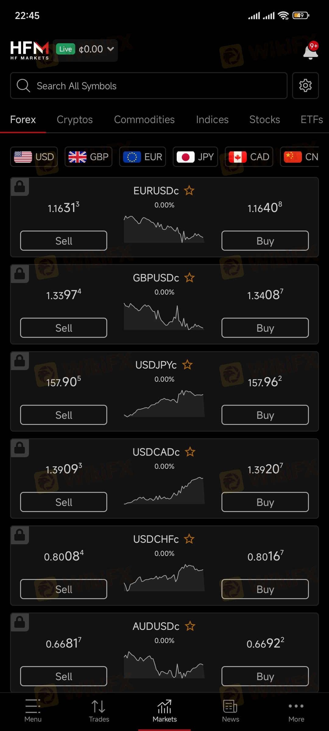 HFM विभिन्न प्रकार की 500+ CFDs जैसे कि Forex, कमोडिटीज, धातु, बॉन्ड्स, ऊर्जा, ETFs, सूचकांक, क्रिप्टो और स्टॉक्स पर प्रदान करता है। यह व्यापक प्रस्तावना व्यापारियों को विभिन्न निवेश संभावनाओं और अपने पोर्टफोलियो को विविध बनाने की क्षमता प्रदान करती है।