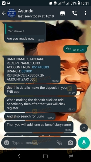 मैंने फेसबुक पर अलाडी को घर से काम करने के बारे में बात करते हुए देखा, जब आप घर पर थे, मैंने उसे सुन्न किया और मैंने उसे व्हाट्सएप किया और उसने लूनो ट्रेडिंग की शुरुआत की, उसने मुझे दिखाया कि वह एक वैध टूट गई है मैं उससे पूछता हूं कि मैं यह कैसे कर सकता हूं वह भी एक खाते का रेत वापस विवरण कहा कि मैं उस पर ट्रांज़िशन कर दूंगा, यहां तक कि जब मैं अपना पैसा जमा करता हूं तो मैं अपने ग्राहकों की तस्वीरें भी दिखाता हूं, इसलिए मैं अपने लाभ के रूप में R3000 कर सकता हूं, मैं इसे 24 घंटे के भीतर प्राप्त करूंगा, मैं कल सुबह तक इंतजार करूंगा I एक ईमेल प्राप्त