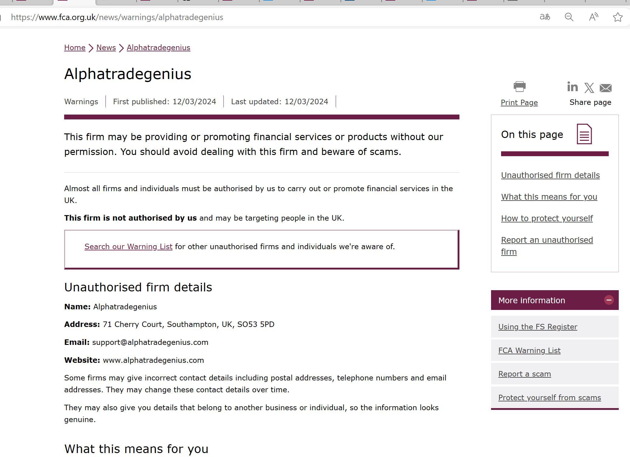 एफसीए चेतावनी सूची - अधिकृत नहीं कंपनियां अल्फाट्रेडजीनियस.