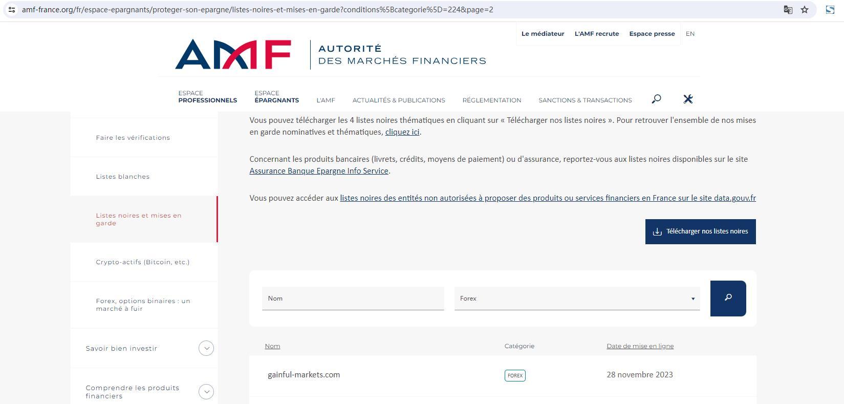 यह ऑटोरिटे डेस मार्चेस फाइनेंशियर्स (AMF) की काली सूची में डाली गई कंपनियों या वेबसाइटों, चेतावनियों और/या विनियमित कंपनियों के हड़पने की सूची है।.