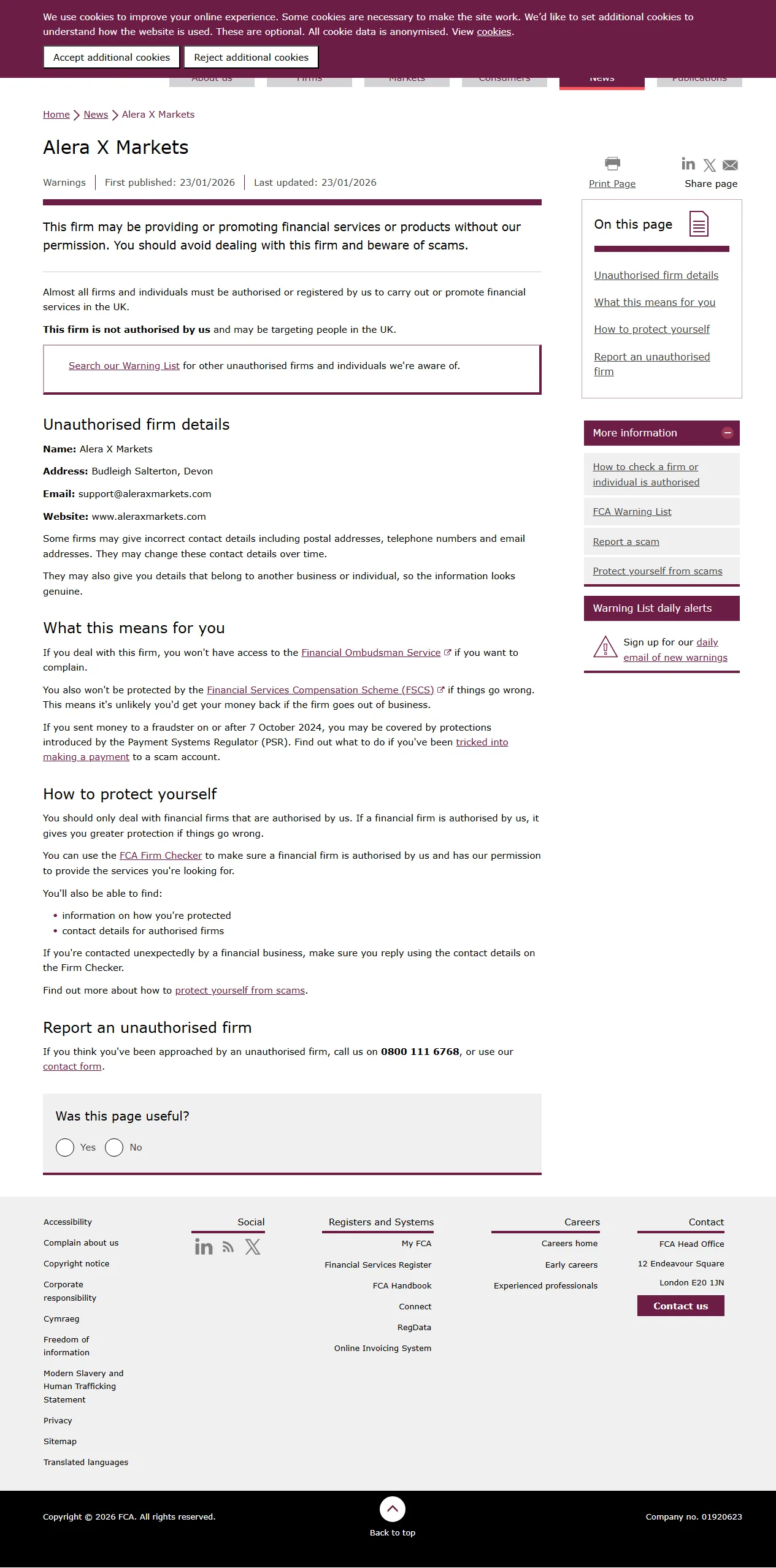 वित्तीय आचरण प्राधिकरण (FCA) यूनाइटेड किंगडम में एक वित्तीय नियामक निकाय है, लेकिन यह यूके सरकार से स्वतंत्र रूप से संचालित होता है, और वित्तीय सेवा उद्योग के सदस्यों को शुल्क देकर वित्तपोषित किया जाता है। 19 दिसंबर 2012 को, वित्तीय सेवा अधिनियम 2012 को शाही स्वीकृति मिली, और यह 1 अप्रैल 2013 से लागू हुआ। इस अधिनियम ने वित्तीय सेवाओं के लिए एक नया नियामक ढांचा तैयार किया और वित्तीय सेवा प्राधिकरण को समाप्त कर दिया। एफसीए उपभोक्ताओं को सेवाएं प्रदान करने वाली वित्तीय फर्मों को नियंत्रित करता है और यूनाइटेड किंगडम में वित्तीय बाजारों की अखंडता को बनाए रखता है। यह खुदरा और थोक वित्तीय सेवा फर्मों द्वारा आचरण के नियमन पर केंद्रित है।