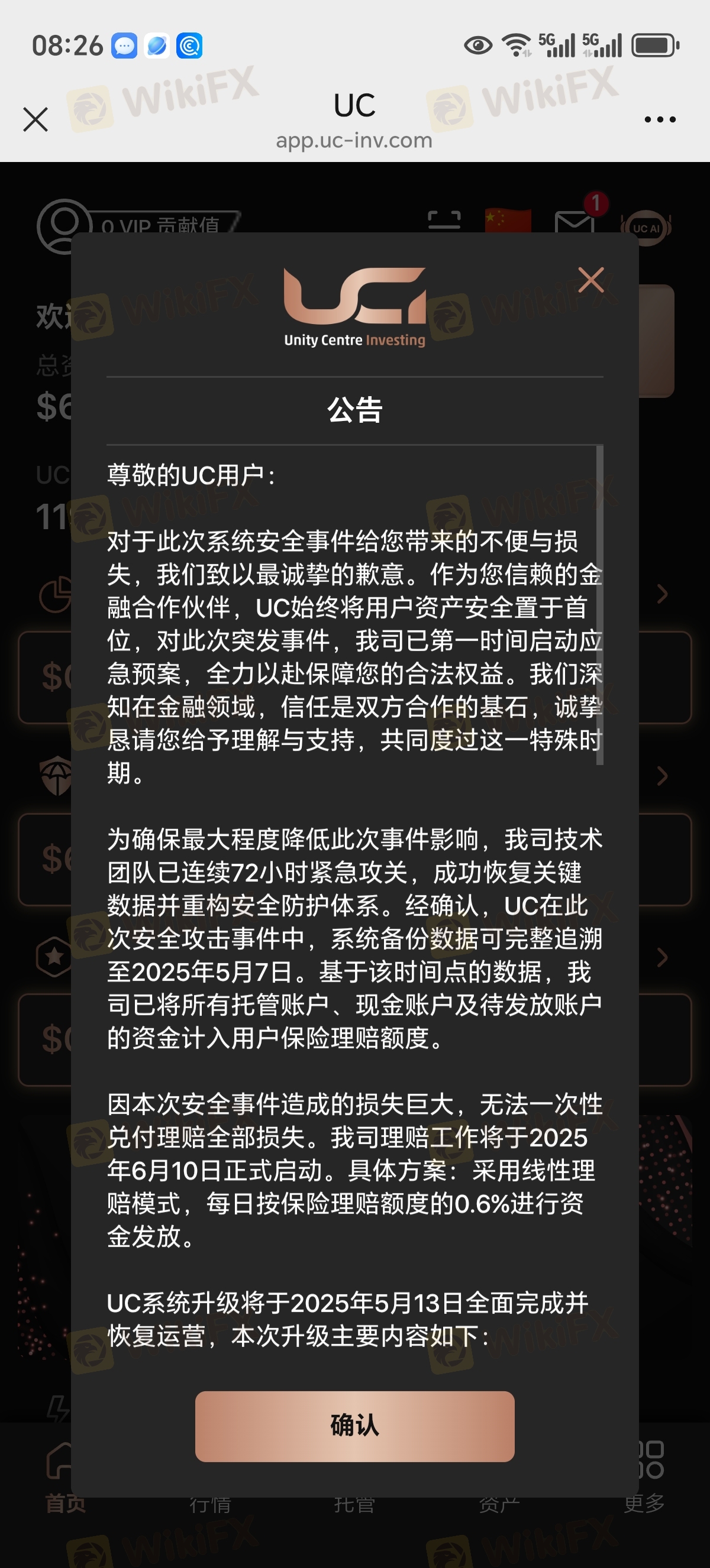 熟悉的配方,熟悉的味道,5月9日说是遭受不攻击导致持仓单子无法按照既定策略操作导致爆仓,然后5月11日又出公告说是公司有责任有担当,愿意启动所谓的保险承担赔偿责任,从6月10日起按照0.6%线性赔偿,说白了就是为了怕那些大户集体报警,劝那些投大资金的人别抱幻想了赶紧的一起报警,只要他们把资金转移到境外那就真的是血本无归了