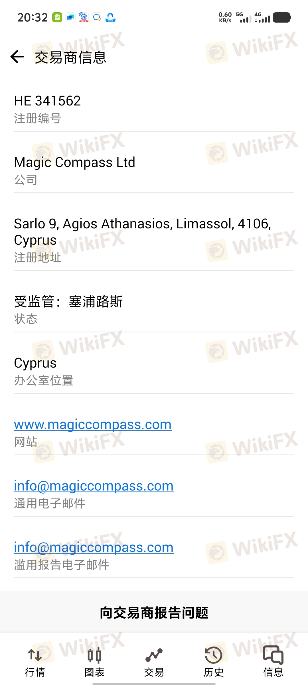 Magic Compass adalah perusahaan layanan keuangan yang diatur yang menawarkan solusi perdagangan dan investasi, diatur oleh Cyprus Securities and Exchange Commission (CySEC). Ini menyediakan informasi dan data penting kepada para trader, seperti kalender ekonomi dan kutipan real-time, untuk membantu dalam pengambilan keputusan perdagangan yang terinformasi. Selain itu, Magic Compass menekankan keamanan klien melalui langkah-langkah seperti Perlindungan Saldo Negatif, yang melindungi klien dari kehilangan lebih banyak uang daripada yang mereka depositkan.