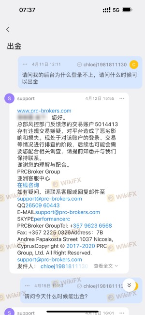 Kami telah menggunakan platform ini selama lebih dari satu dekade, tetapi tidak dapat menarik dana. Platform ini dijalankan oleh seseorang bernama Ito, seorang warga Tiongkok dengan kewarganegaraan Jepang. Tahun lalu, kami memiliki klien utama yang melakukan deposit untuk melakukan perdagangan Dow di platform ini. Saat melakukan deposit, sebagai agen, kami secara khusus menghubungi Ito untuk mengonfirmasi apakah platform Prc dapat menjamin keamanan penarikan dana klien. Ito berkali-kali meyakinkan kami bahwa tidak akan ada masalah. Namun, ketika klien menghasilkan keuntungan sebesar 1,13 juta USD, mereka menolak untuk memperbolehkan penarikan dana, dan dengan paksa menutup akun klien dengan alasan pelanggaran. Yang lebih buruk lagi, mereka bahkan menolak untuk membayar komisi agen kami sebesar 18.963 USD (saya telah mengunggah laporan backend agen saya dan catatan percakapan WeChat dengan orang yang bertanggung jawab di Prc, Ito). Sudah hampir setahun sekarang. Layanan pelanggan mereka dan orang yang bertanggung jawab di Prc, Ito, telah memblokir saya. Platform ini adalah platform pasar non-hedging. Ini adalah platform yang tidak terpercaya. Harap berhati-hati jika Anda masih melakukan perdagangan di platform ini. Platform ini mengincar modal Anda. Klien harus waspada saat melakukan perdagangan di platform ini dan tidak membiarkan antusiasme layanan pelanggan platform membingungkan nalar keuangan Anda. Perilaku tercela platform ini telah melampaui batas hukum, hanya merupakan cara lain dari penipuan. Setelah mereka menipu modal klien, mereka mencari klien baru lagi, dan staf layanan pelanggan seringkali mengganti nomor WeChat dan QQ mereka.