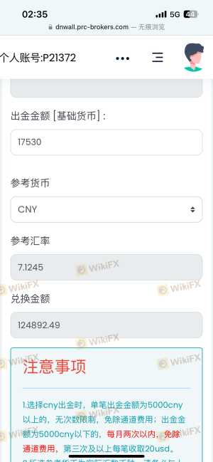 PRCBroker membekukan akun dan tidak mengizinkan penarikan.