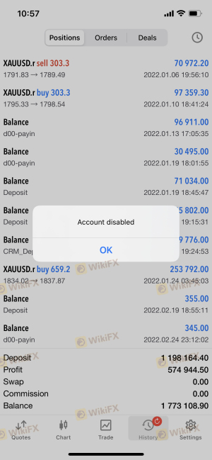 Saya bertemu seseorang di WeChat dan memperdagangkan emas spot di broker Rui Win Capital di MT5 melalui dia hingga 11 Februari 2022. Total keuntungannya adalah $233902. Pada tanggal 2-11-2022, ketika saya ingin menarik $30.000, saya diberitahu bahwa saya akan membayar pajak 20% dari total keuntungan, dan itu tidak dapat dipotong langsung dari keuntungan tanpa pemberitahuan tertulis. Saya langsung mengunci akun saya. Saya mencoba berkomunikasi dengan layanan pelanggan selama beberapa hari dan tidak ada tanggapan. Bersedia meminta valuta asing untuk membantu saya memulihkan uang saya dan mempublikasikannya, sehingga lebih banyak orang tidak akan tertipu.