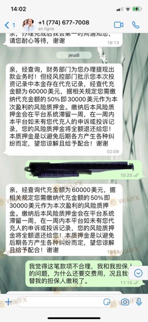Ini adalah penipuan. Ini menunjukkan bahwa mereka memiliki pengawasan di WikiFX, tetapi sebenarnya mereka tidak memilikinya. Seseorang akan memperkenalkan Anda untuk bergabung dan terus meminta Anda untuk melakukan deposit. Mereka tidak akan menarik atau menghubungi layanan pelanggan.