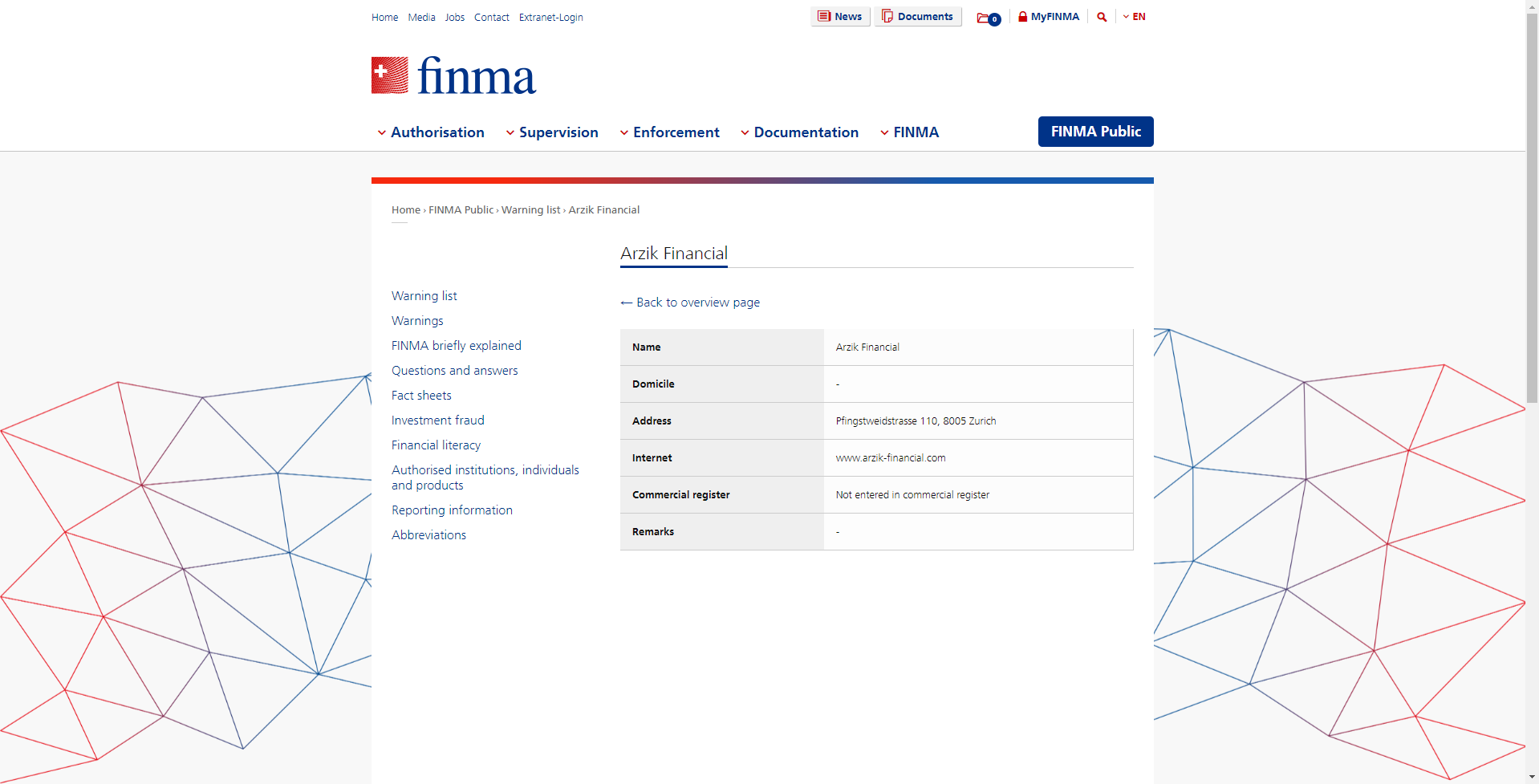 nama ARZIK FINANCIAL domisili - alamat pfingstweidstrasse 110, 8005 zurich internet www.arzik-financial.com daftar komersial tidak dimasukkan dalam catatan daftar komersial -