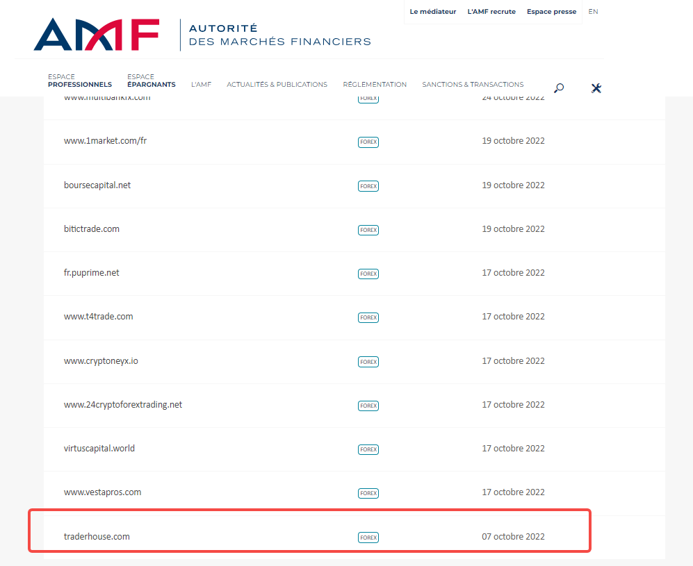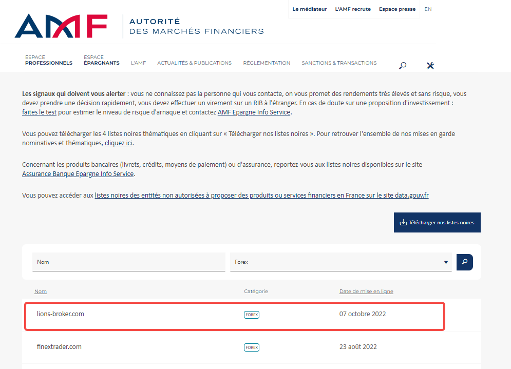 Ini adalah daftar perusahaan atau situs web yang masuk daftar hitam Autorité des Marchés Financiers (AMF), peringatan dan/atau perampasan perusahaan yang diatur.