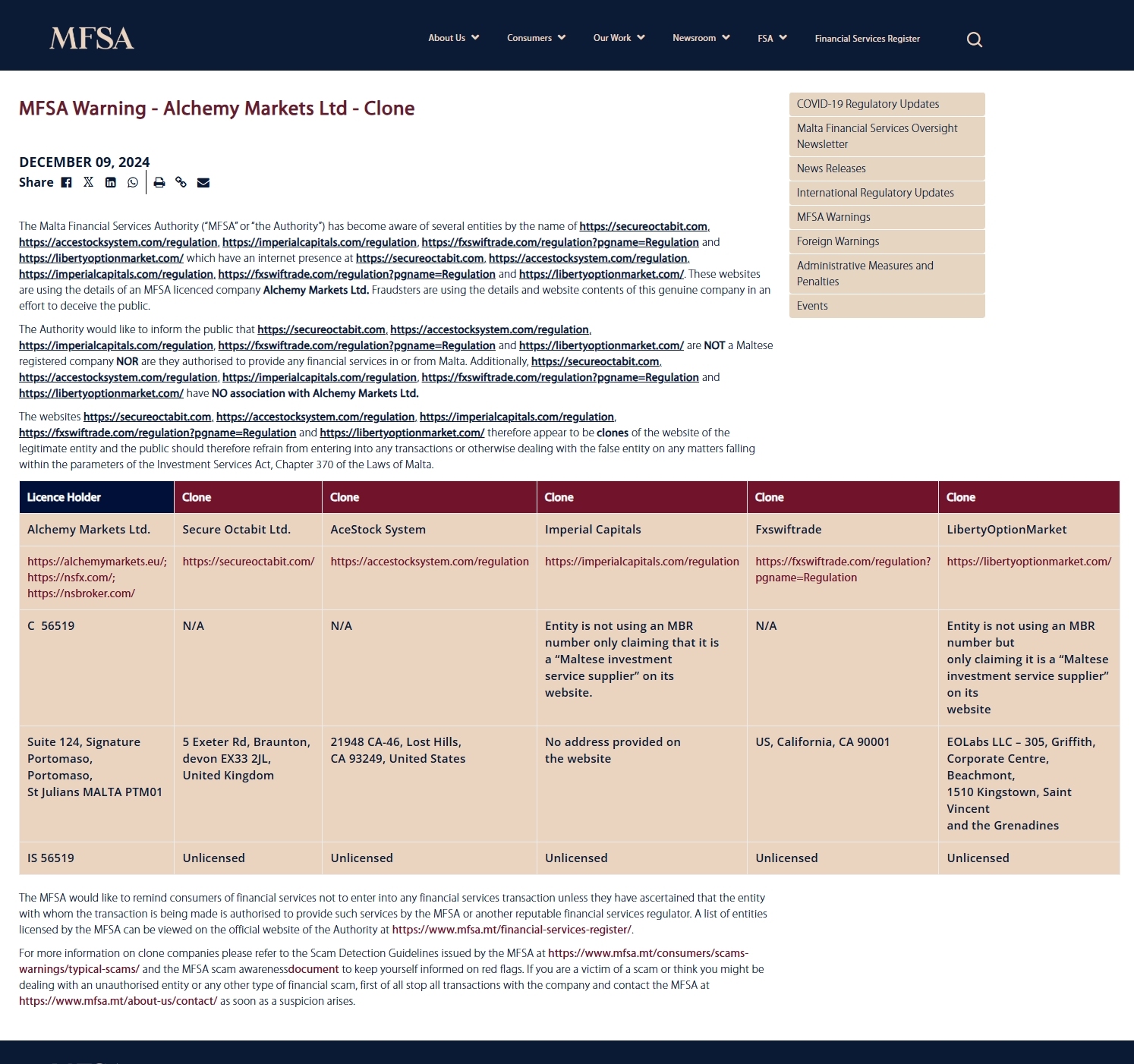 peringatan mfsa - Alchemy Markets Ltd - kloning