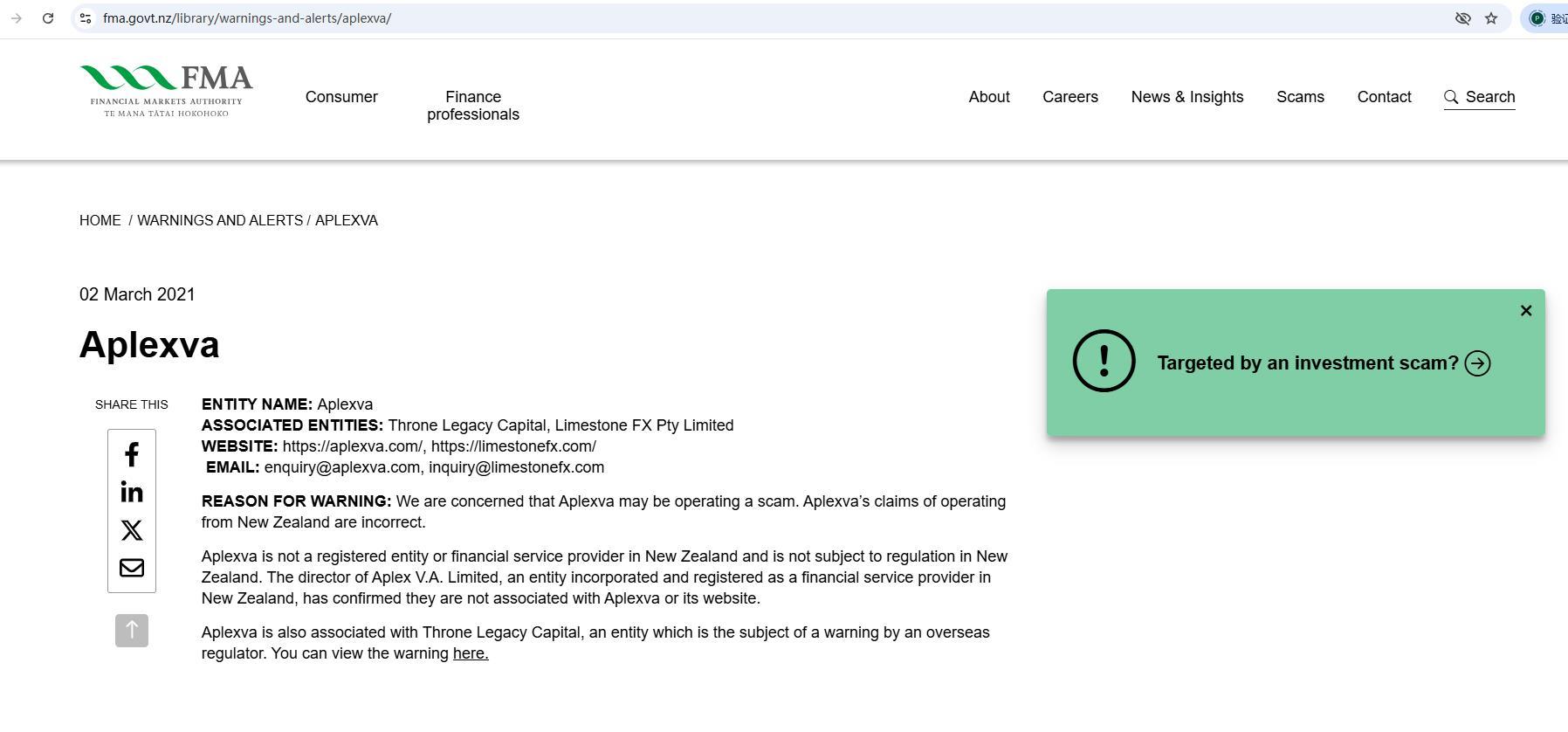 • Alasan hukuman Aplexva bukan entitas terdaftar atau penyedia layanan keuangan di Selandia Baru dan tidak tunduk pada peraturan di Selandia Baru.