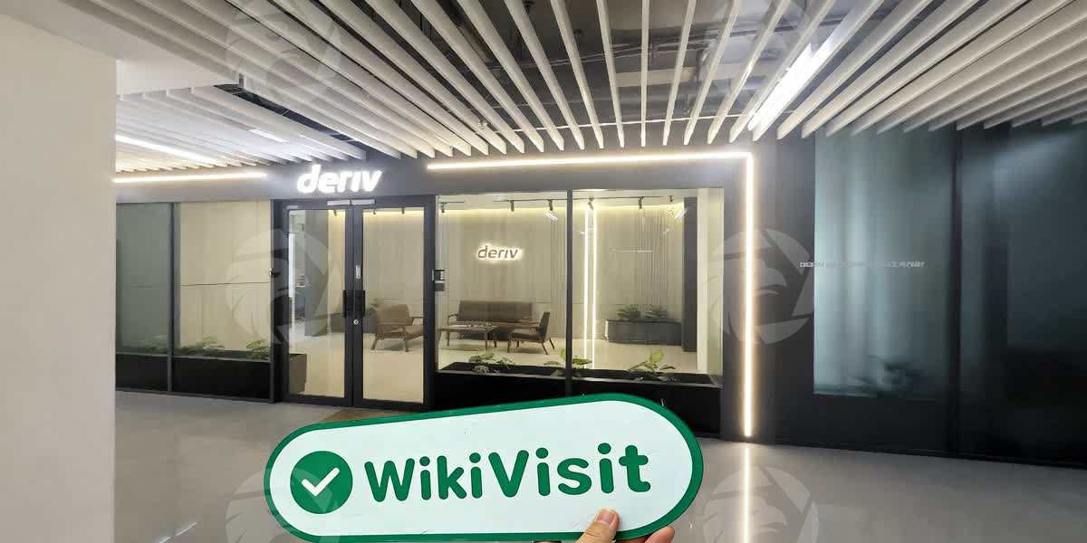 Setibanya di lantai tujuan, surveyor lapangan melihat tanda yang jelas untuk area kantor Deriv. Namun, karena alasan seperti tidak adanya janji temu sebelumnya, surveyor tidak dapat memasuki bagian dalam. Ini adalah ruang kantor bersama, dan surveyor dapat memotret meja resepsionis serta logonya.