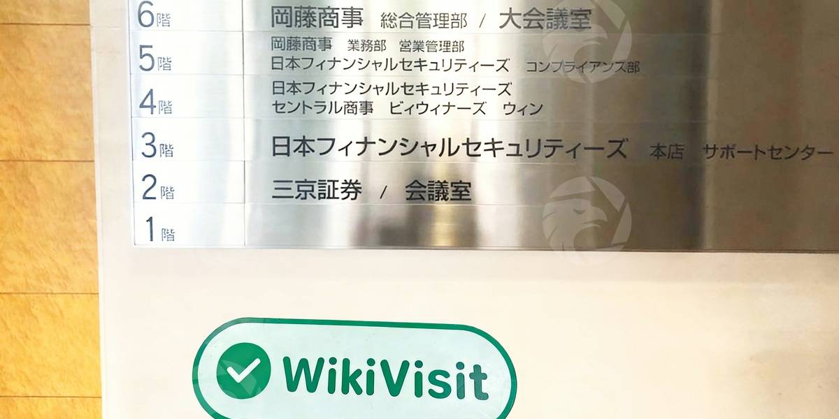 Di bawah bimbingan Google Maps, surveyor menemukan gedung kantor yang ditunjukkan oleh informasi peraturan. Surveyor tidak sengaja menemukan tanda yang menunjukkan nama Jepang Nihon Financial di rumput di luar gedung.