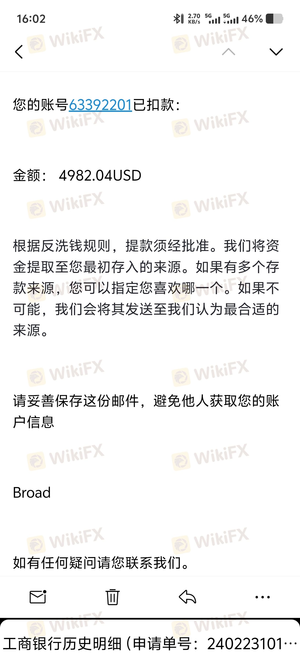 出金后,账户扣款,到资金未到账
