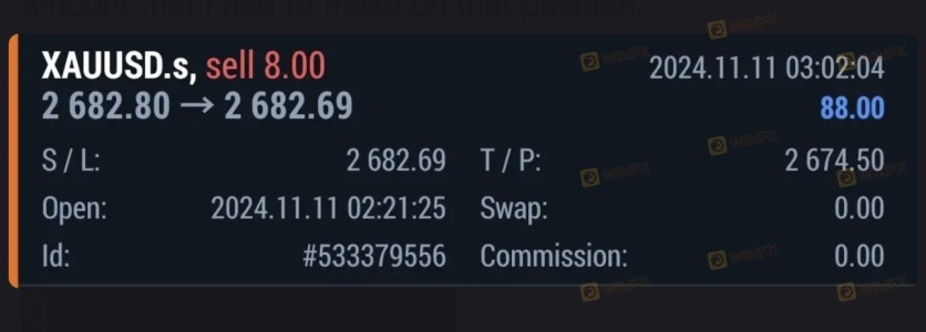 I had a sell position on XAUUSD for 8.00 Lots (11-11-2024) at the price of 2682.80 I have waited for this trade like 40-45 minutes till the Asian markets opened and the price started to drop and as soon as it crossed my entry price I put a SL at 2682.69 to protect my position. Once I have closed the trade modification the position was already closed even when the candle kept dropping and it reached my desired TP at 2674.5. I have contacted their support for almost a month till I got an answer on this matter yet they claim that when the SL was placed the price came back up to 2682.69 then it dropped again, recently I had a free time to check this out on MT5 strategy tester to check specifically how the candles formed, yet the candle never retraced to my SL and the price it stayed at for a few milliseconds was around 2682.61-2682.63 then it continued dropping. I checked this time stamp with multiple brokers that I trade with yet the price never came back to my SL during that duration.