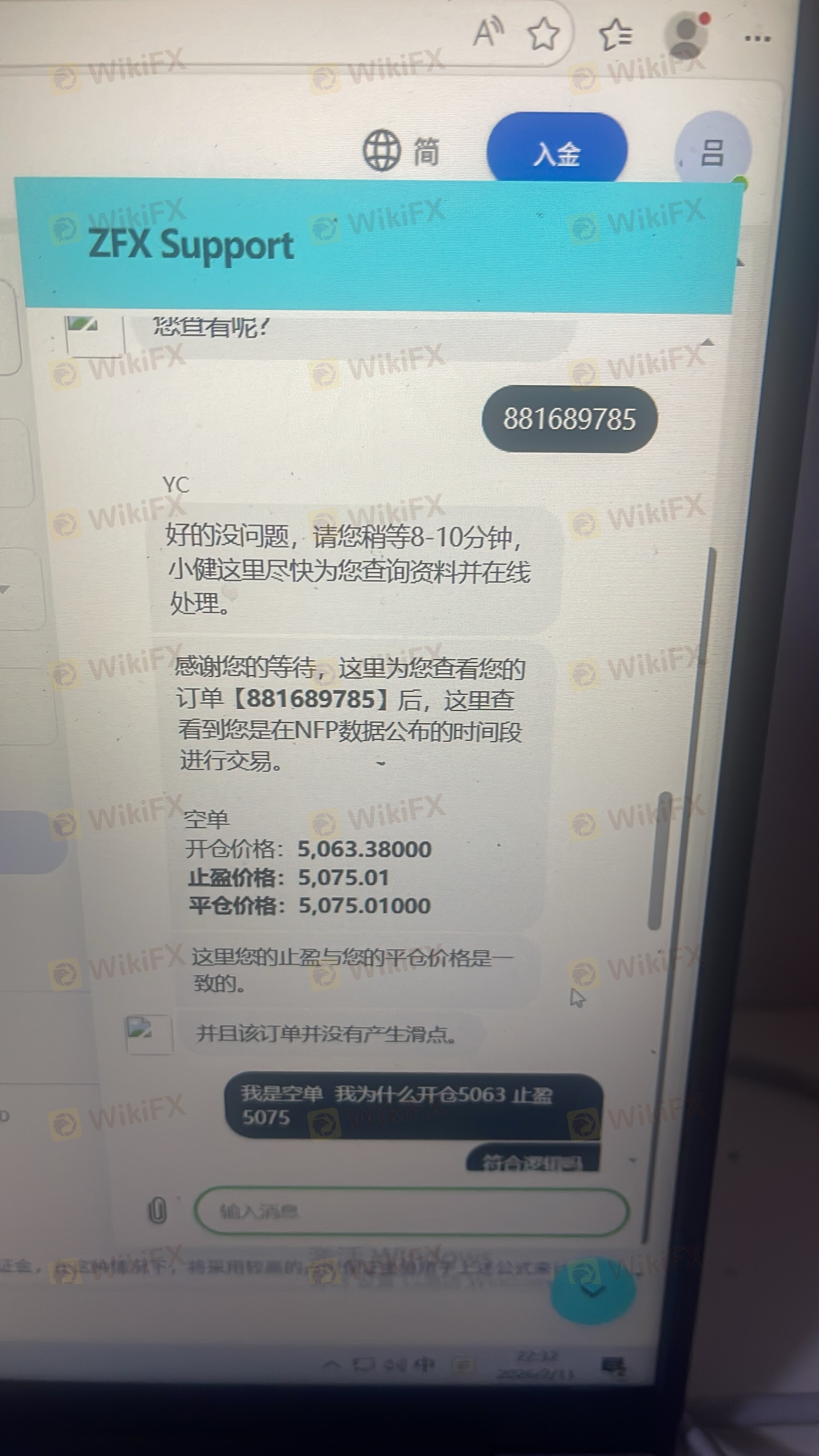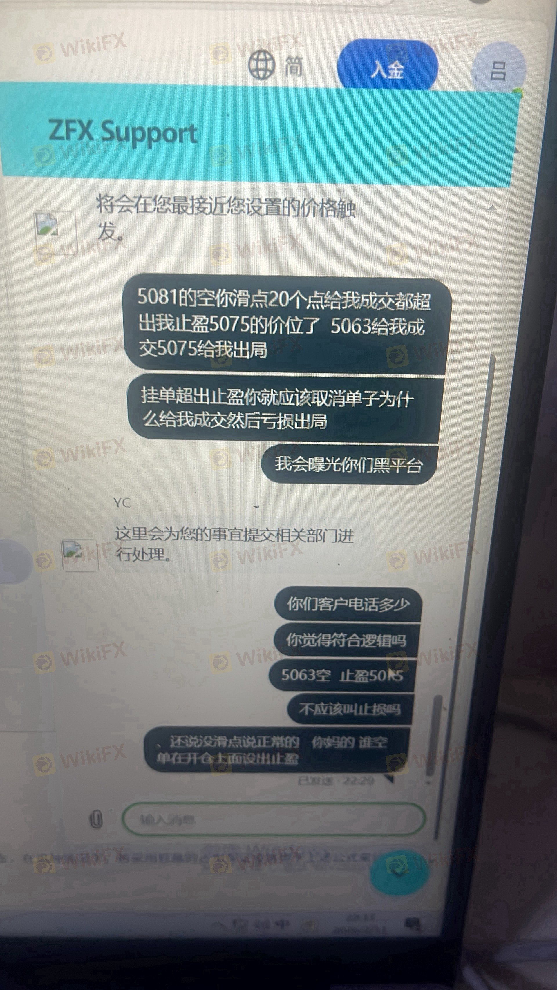 ZFX 山海证券止损止损滑点很多美金,让我损失了不少资金。