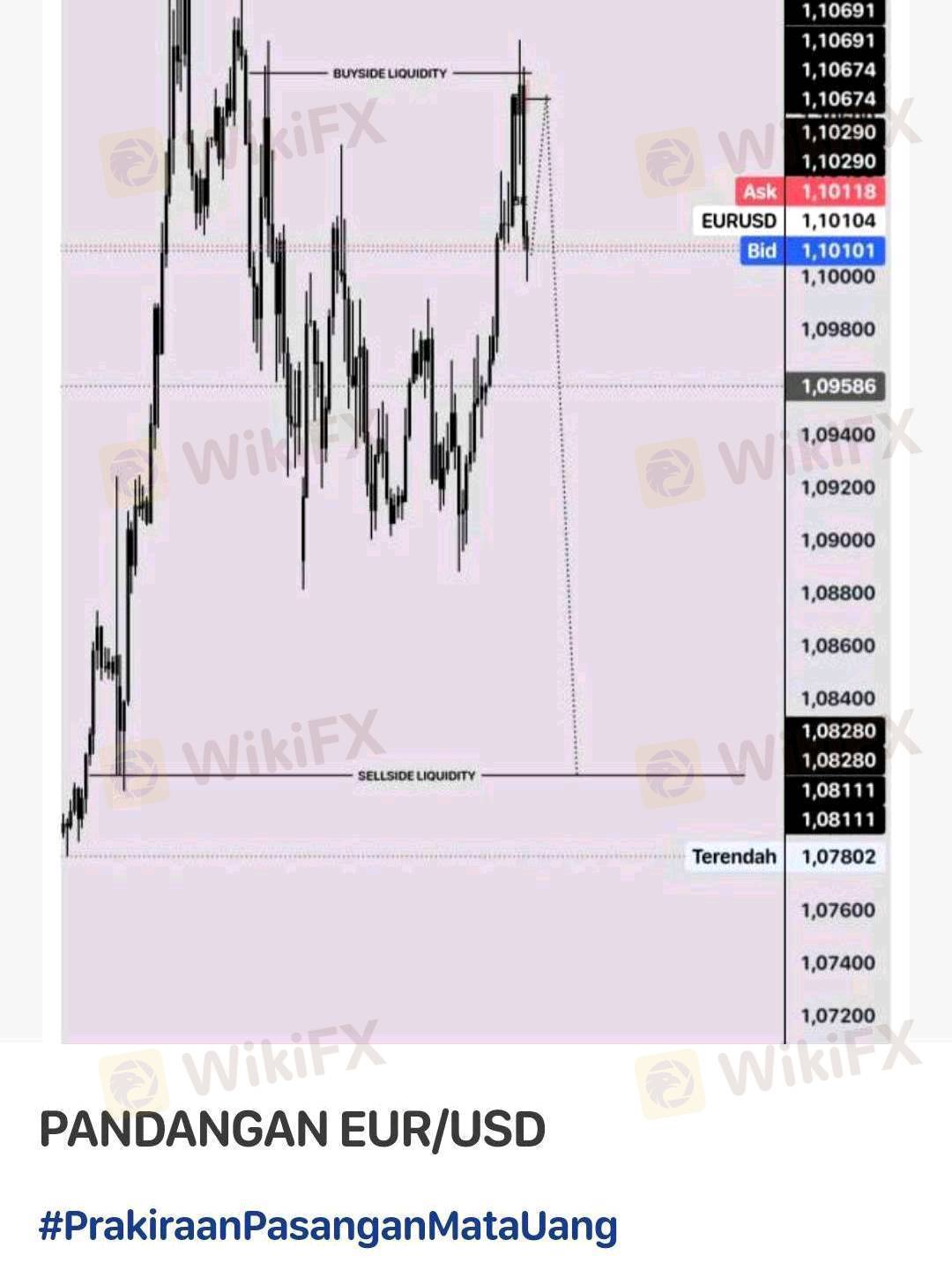 Harga mungkin menembus 1.10280 terlebih dahulu (stop hunt) sebelum reversal turun.