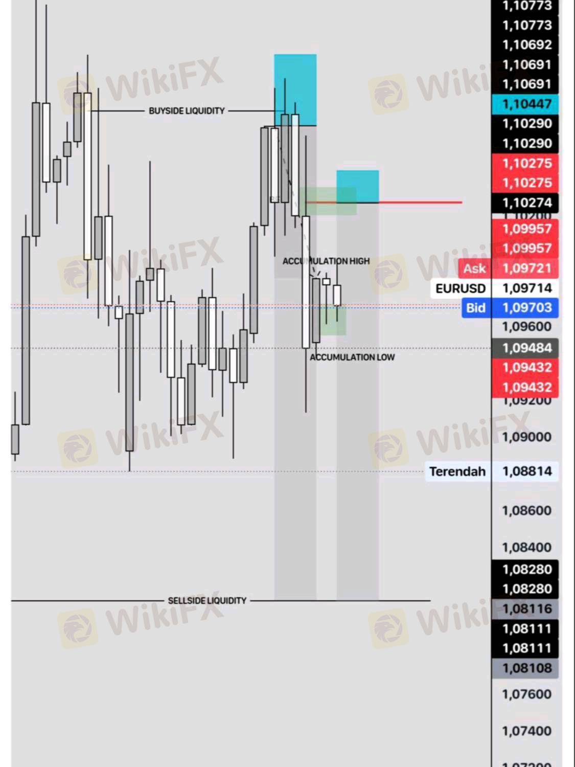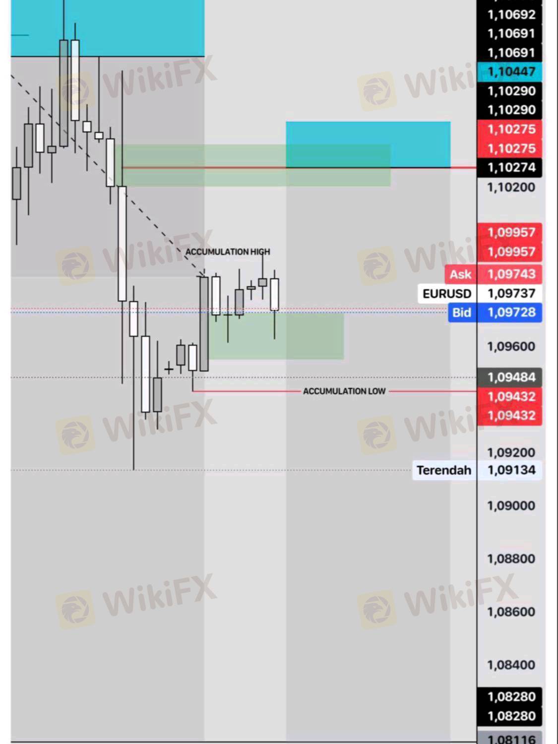 Konfirmasi entry sell dengan target 1.09432 (Accum Low) → 1.08280.
