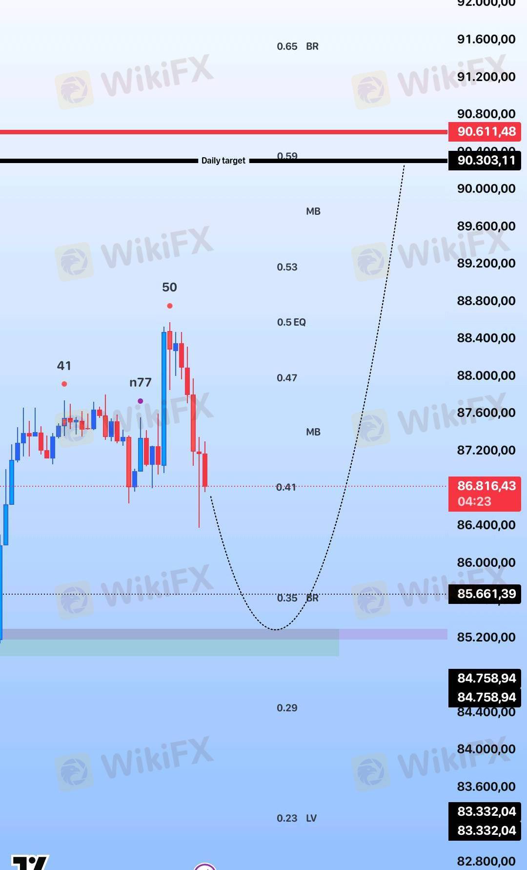 Setelah Bitcoin (BTC) mencapai puncak harga $88,575, terjadi penolakan harga yang mengarah pada koreksi. Saat ini, ada kemungkinan harga akan turun ke level $85,500. Meskipun demikian, potensi bullish masih sangat kuat dengan target harian yang dapat mencapai $90,000.