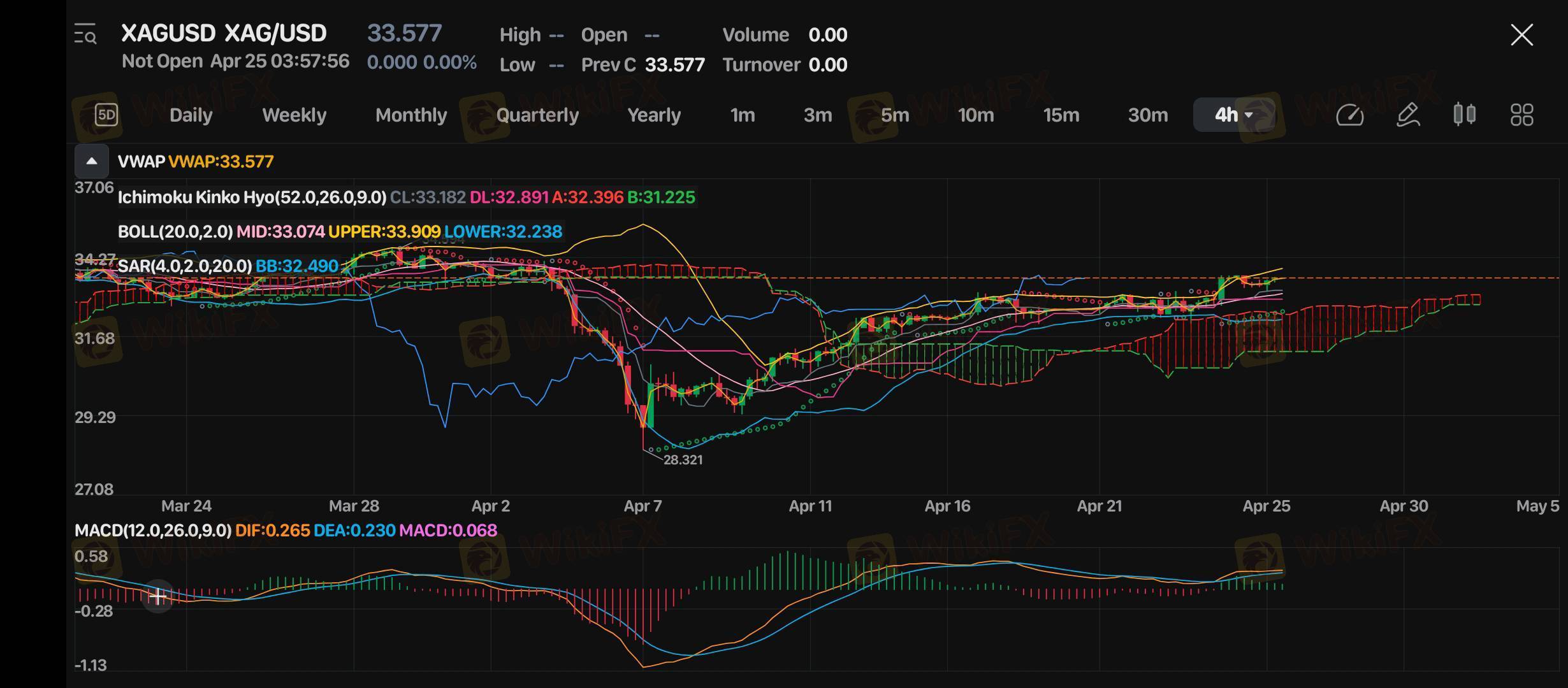 VWAP: Harga sama persis dengan VWAP ($33.577), menandakan bahwa harga saat ini berada di area keseimbangan breakout bisa terjadi dalam waktu dekat jika ada dorongan volume.
