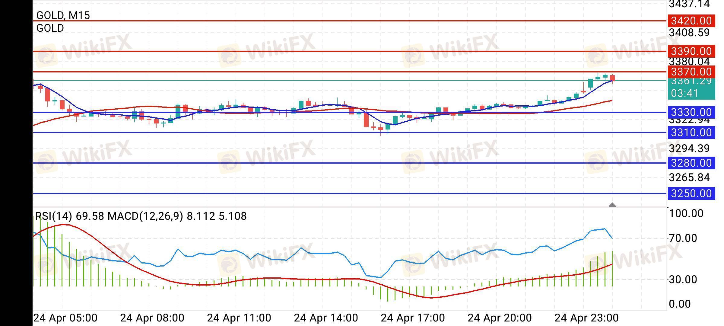 Kesimpulan: Gold saat ini berada dalam fase bullish jangka pendek. Selama harga tetap bertahan di atas 3330, peluang kenaikan lebih lanjut tetap terbuka. Perlu waspada terhadap potensi koreksi pendek mengingat RSI pada M15 mendekati area overbought.