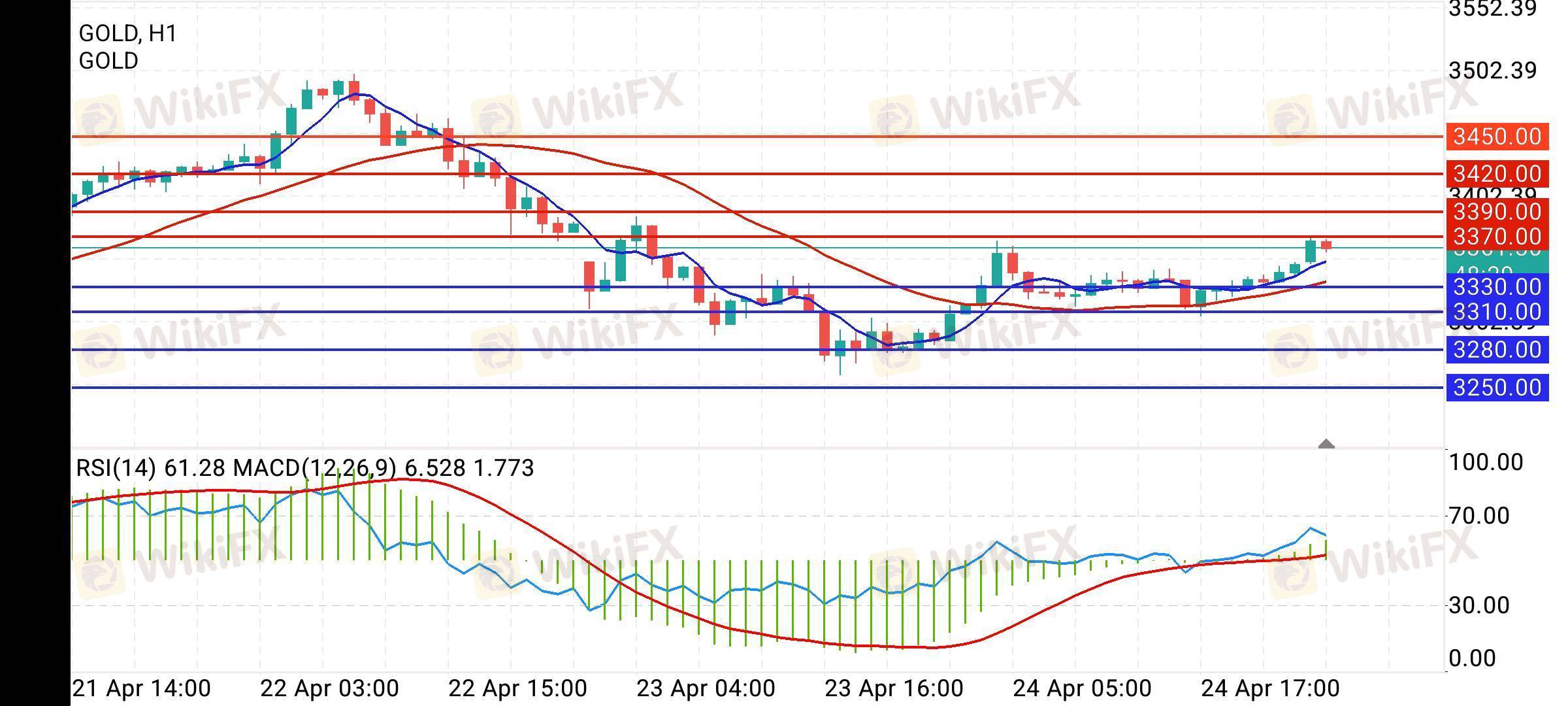 Jika harga berhasil break dan close di atas 3370, potensi kenaikan menuju 3390 dan 3420 terbuka.