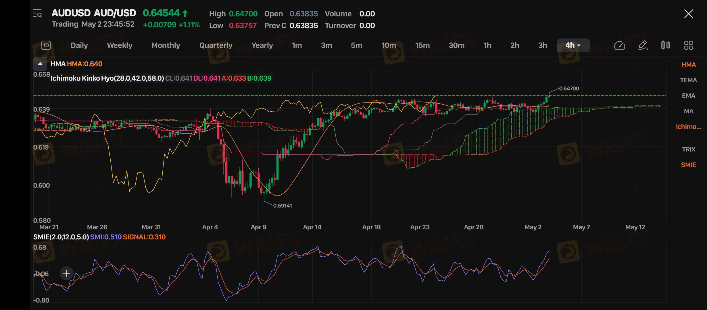 Selama harga bertahan di atas 0.64100 (support HMA & awan Ichimoku), potensi rally lanjutan sangat terbuka.