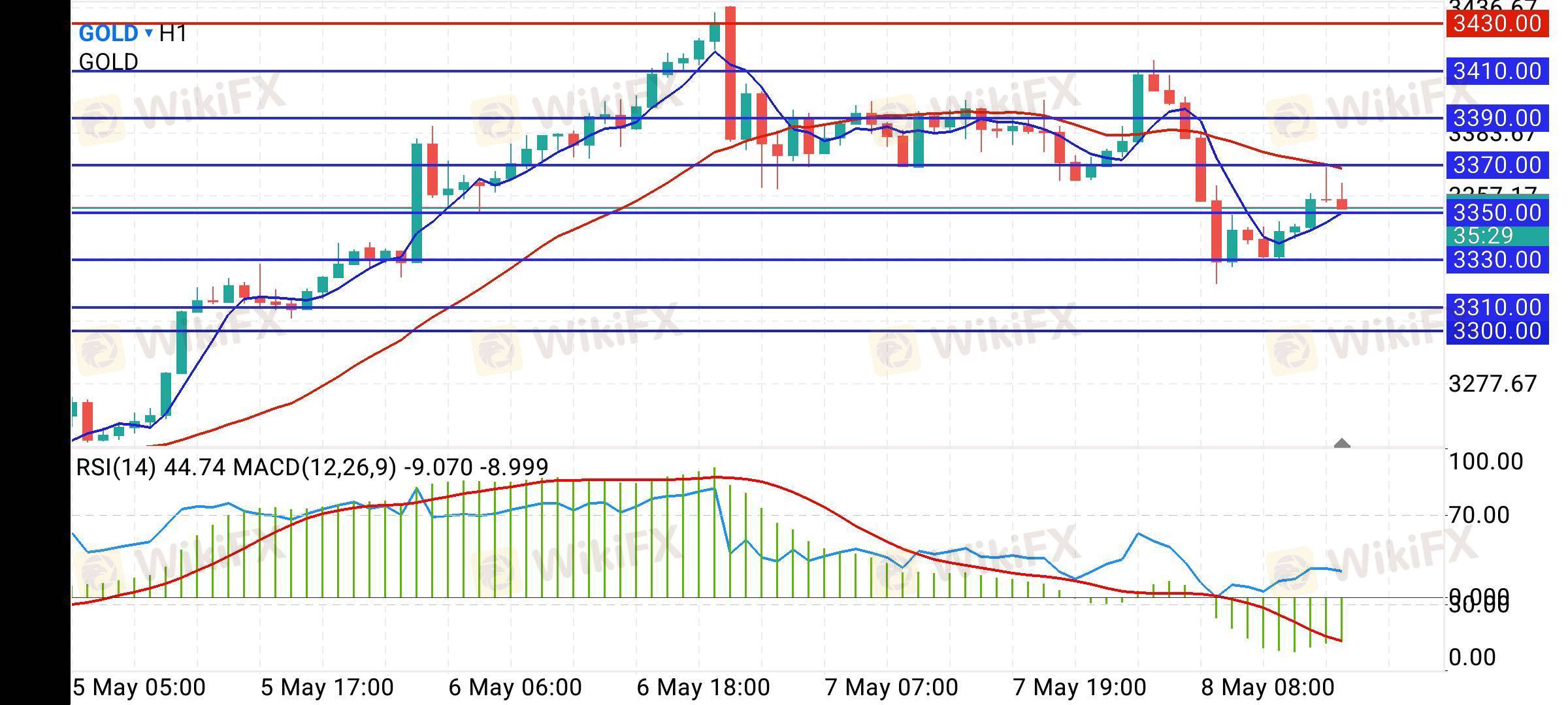 Terlihat ada rebound setelah penurunan tajam, menyentuh 3330 lalu naik ke 3350-3370.