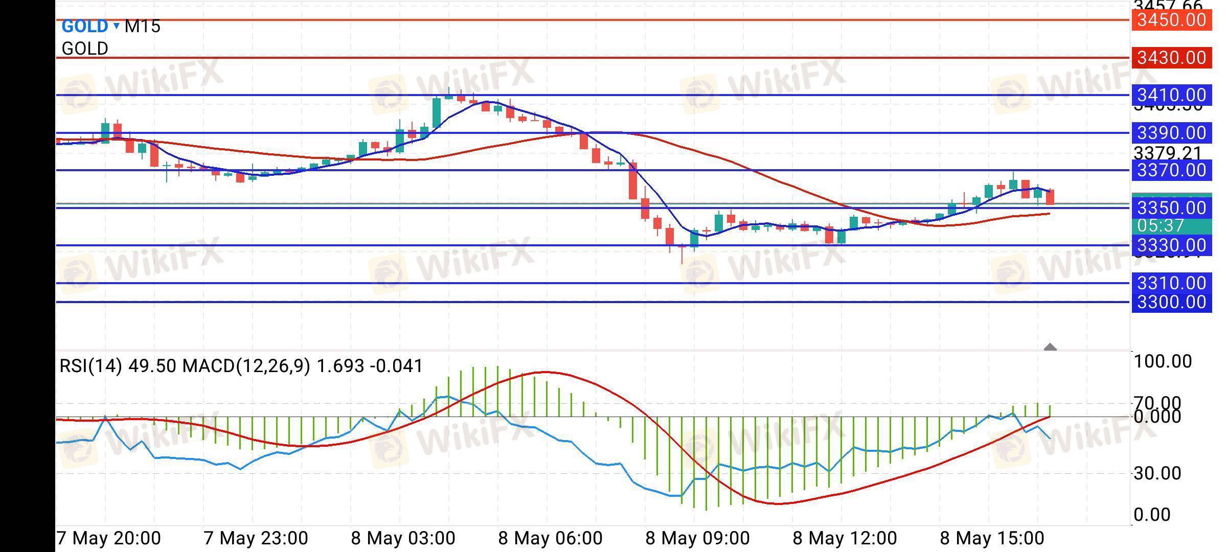 M15 menunjukkan potensi pullback kecil, tapi kenaikan mulai kehabisan tenaga di sekitar 3350.