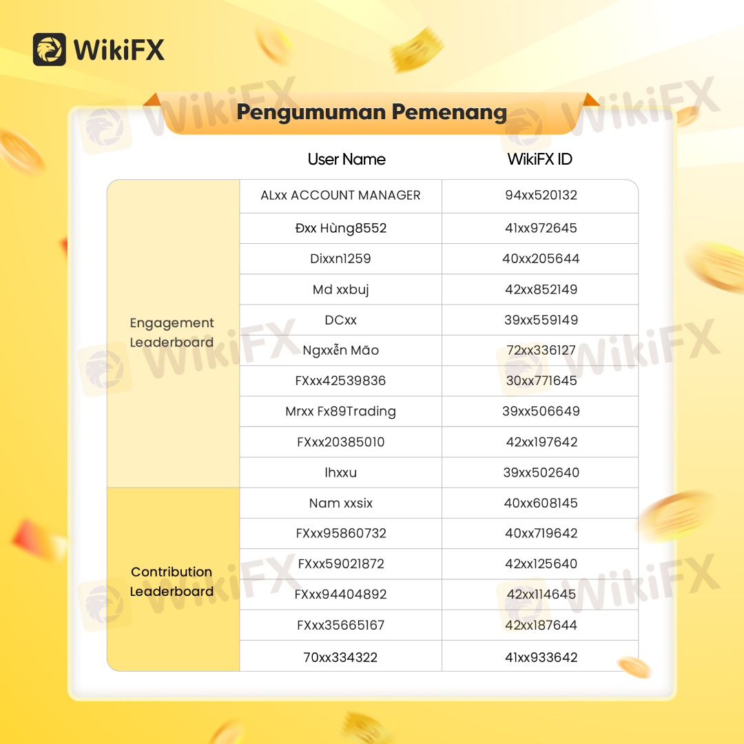 IndustriPengumuman Pemenang Tantangan Prediksi Forex WikiFX