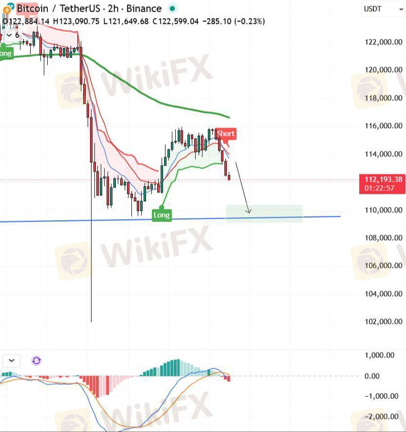 BTC chart 2h, cenderung koreksi, sepertinya ini akan retest kembali ke level support di 110k.