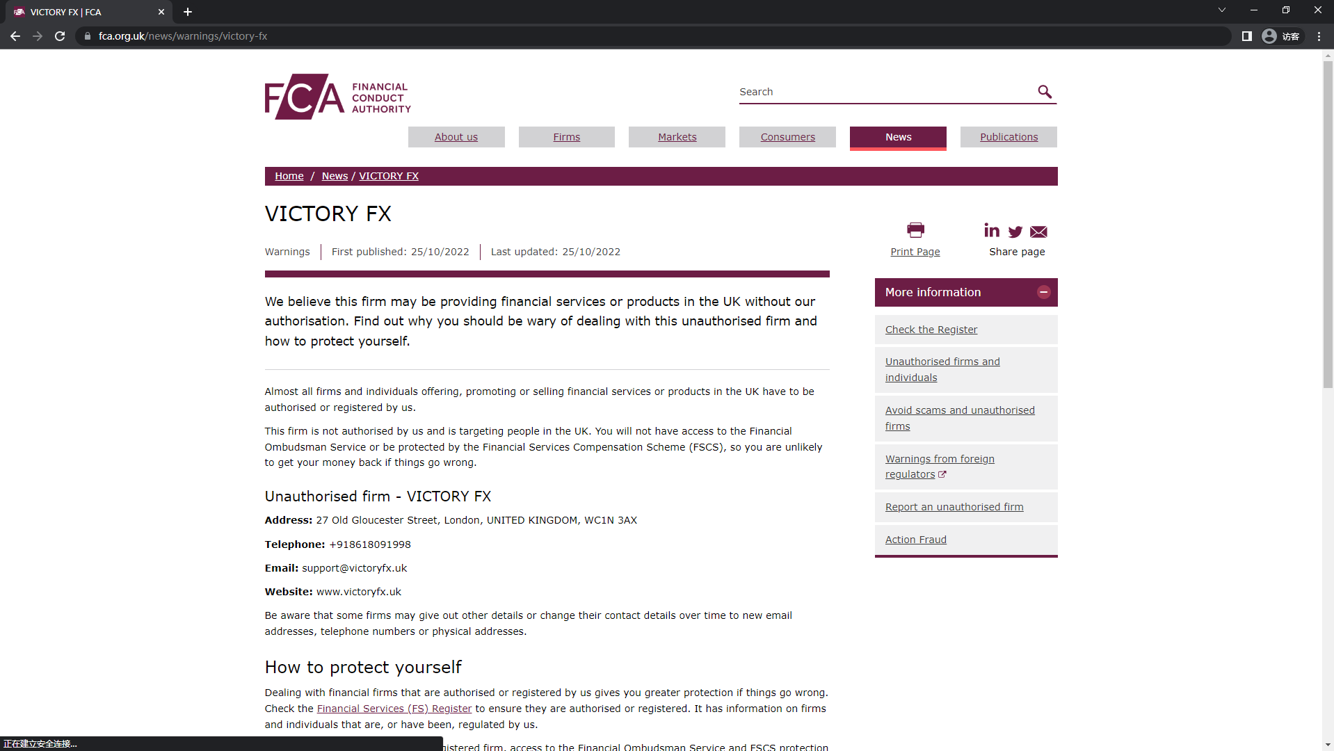 Daftar Peringatan FCA mengenai perusahaan yang tidak berwenang VICTORY FX.