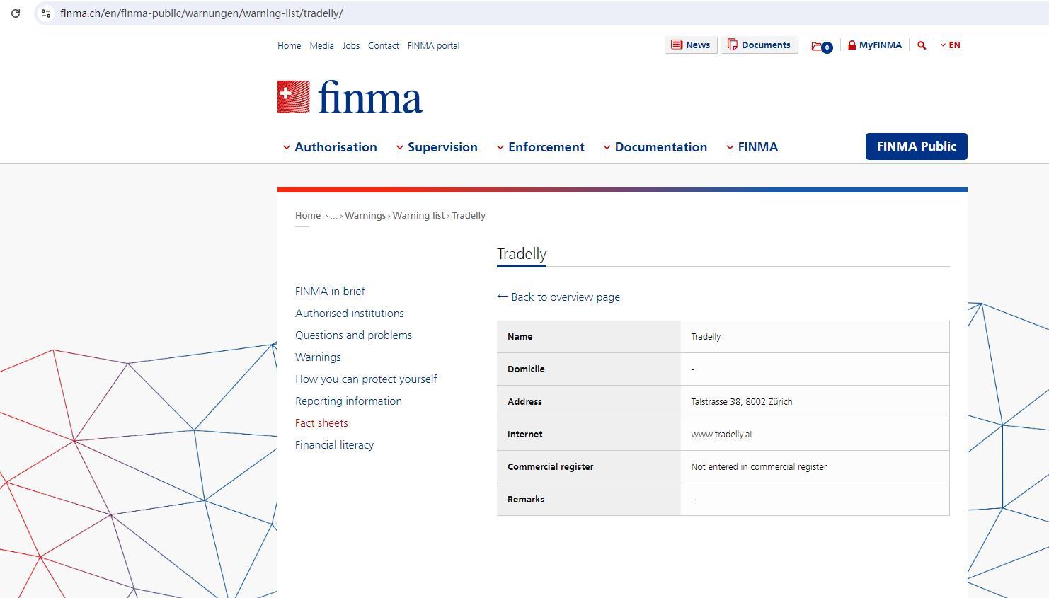Daftar peringatan perusahaan dan individu yang tidak berwenang Daftar Peringatan - www.tradelly.ai.