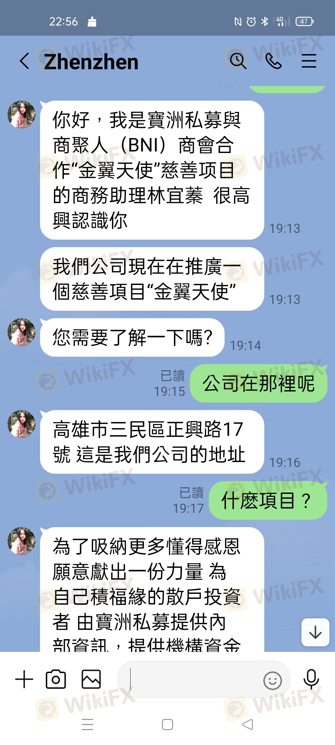 Line 之前騙我的人,已換名字,用同一個帳號,說投資台股,但要捐款給慈善機購,還說捐完要提供拍照收據,對方說地址是高雄市三民區正興路17號 ,不知是真是假,此地址應是住商混合大樓,