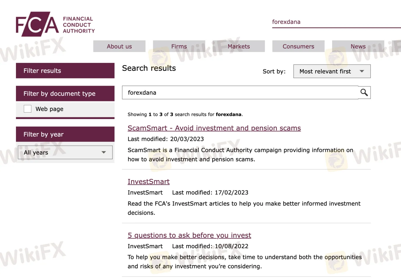 Se Forexdana non è elencato sul sito web di fca, si consiglia di prestare attenzione e condurre ricerche approfondite prima di intraprendere qualsiasi attività finanziaria con l'azienda. i broker non regolamentati possono presentare rischi maggiori per i trader, incluso il potenziale per attività fraudolente o misure di protezione del cliente inadeguate.
